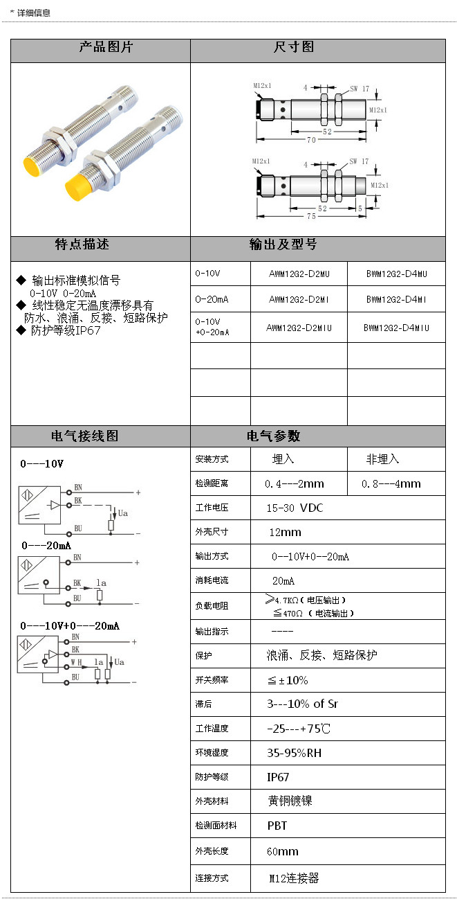 詳細(xì)信息 AWM12G2-D2MU,BWM12G2-D4MU,AWM12G2-D2MI,AWM12G2-D2MIU,BWM12G2-D4MIU,接插式M12模擬量傳感器