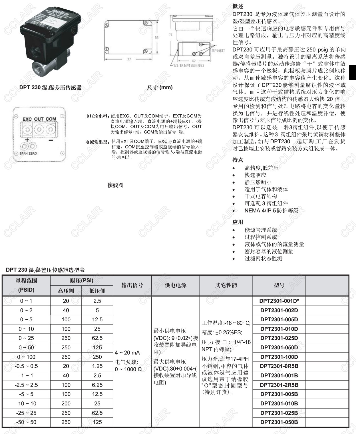 DPT2301-001D,DPT2301-002D,DPT2301-005D,DPT2301-010D,DPT230,液體或氣體濕型差壓傳感器