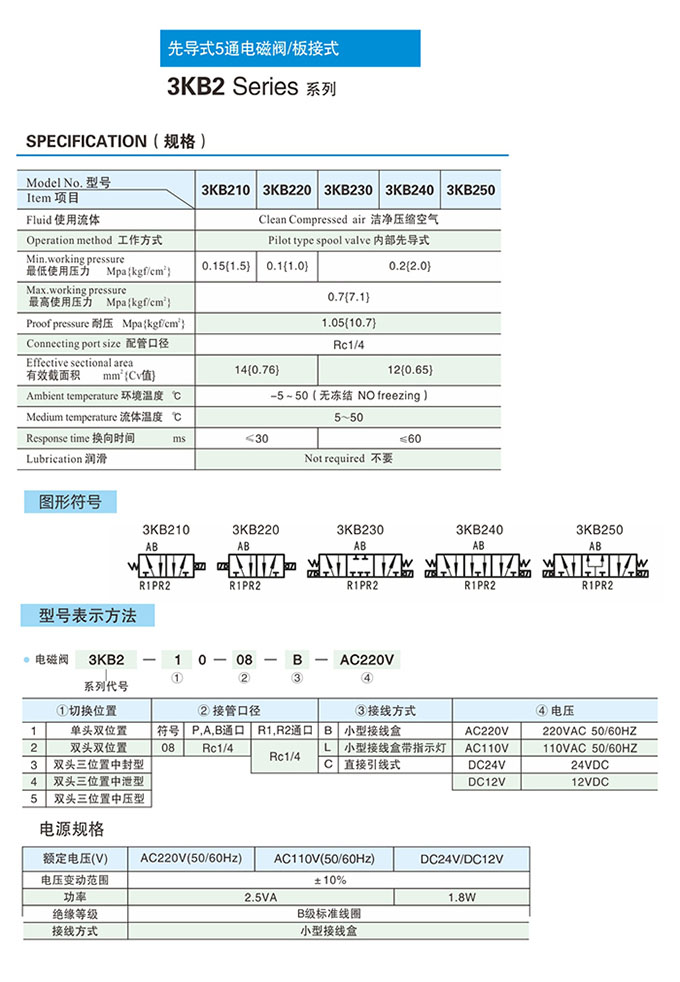 詳細(xì)信息 3KB210-08,3KB220-08,3KB230-08,3KB240-08,3KB250-08,3KB210-08-B,先導(dǎo)式五通電磁閥