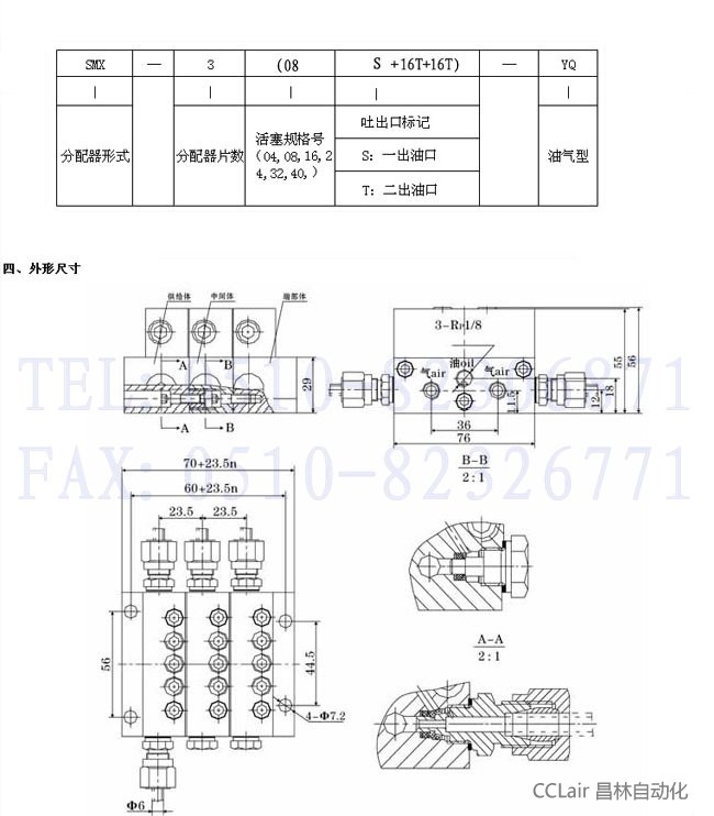 YQ型油-氣分配混合器,是由模塊式的單線遞進分配器和混合器組合疊加而成。設有一個進油口,二個進氣口,3~16個油氣出口。適用于單線二分式油氣潤滑系統(tǒng)和雙線-遞進式油氣潤滑系統(tǒng)中。