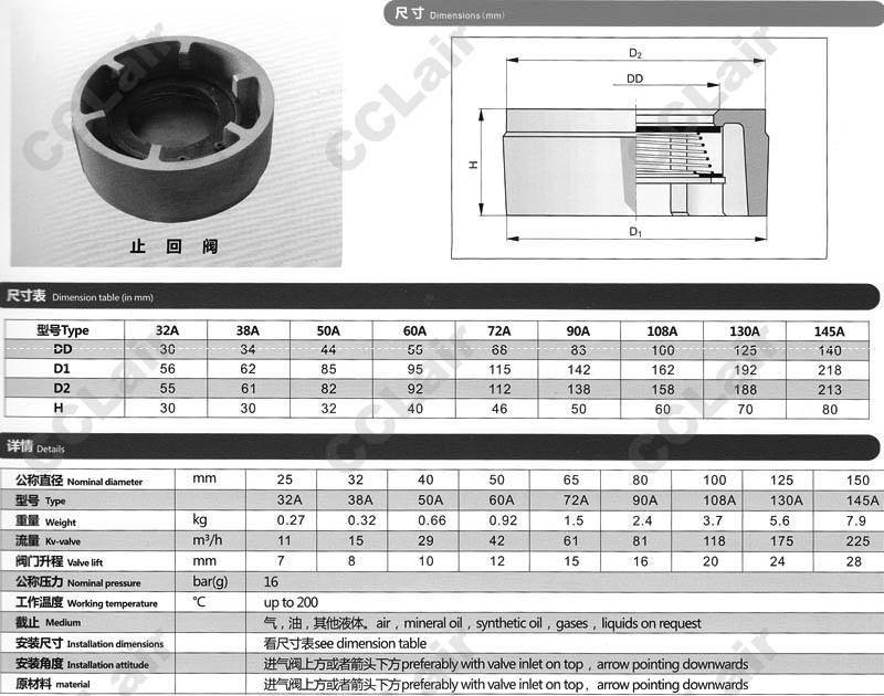 詳細信息 32A,38A,50A,60A,72A,90A,108A,130A,145A,止回閥