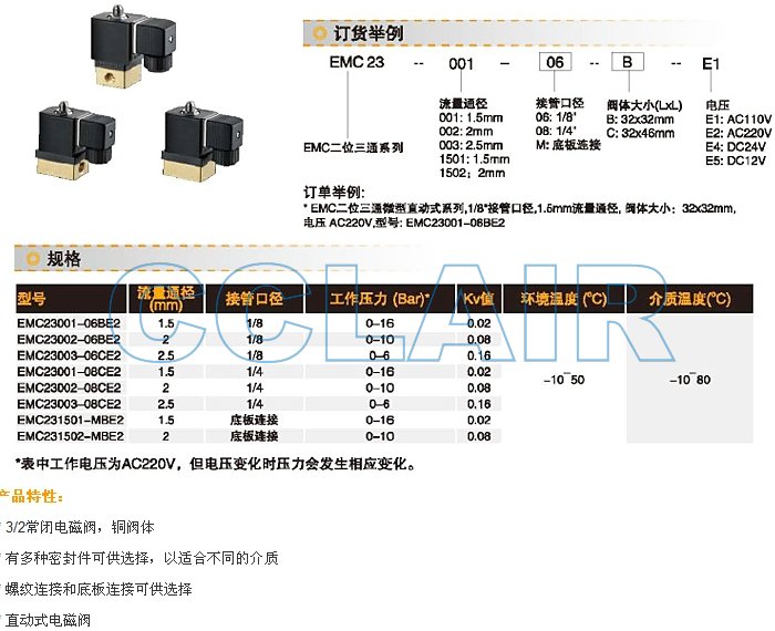 詳細信息 EMC23001-06,EMC23002-06,EMC23003-08,EMC231501-08,EMC231502-M,EMC23003-M,電磁閥