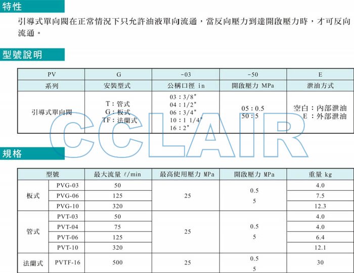 PVT-03,PVT-04,PVT-06,PVT-10,PVT-16,引導(dǎo)式單向閥