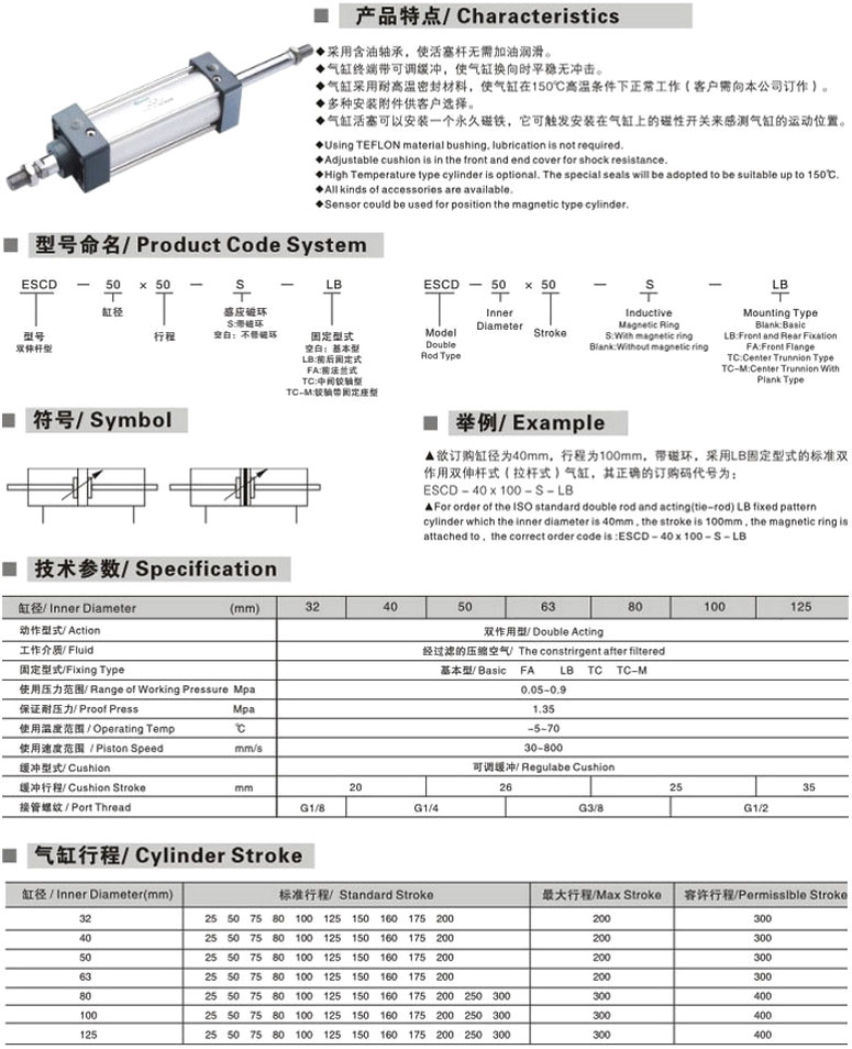 ESCD-40*25,ESCD-40*75,ESCD-40*80,ESCD-40*100,ESCD-40*125,ESCD-40*150,ESCD-40*160,ESCD-40*175,ESCD-40*200,
