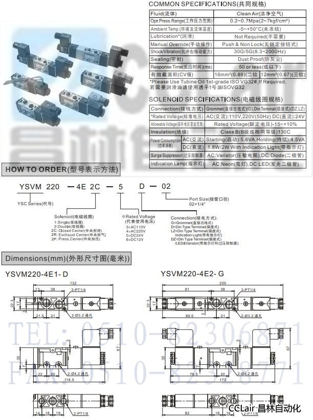 YSVM220-4E1-D,YSVM220-4E2-G,YSVM220-4E2C-D,五通先導型電磁閥