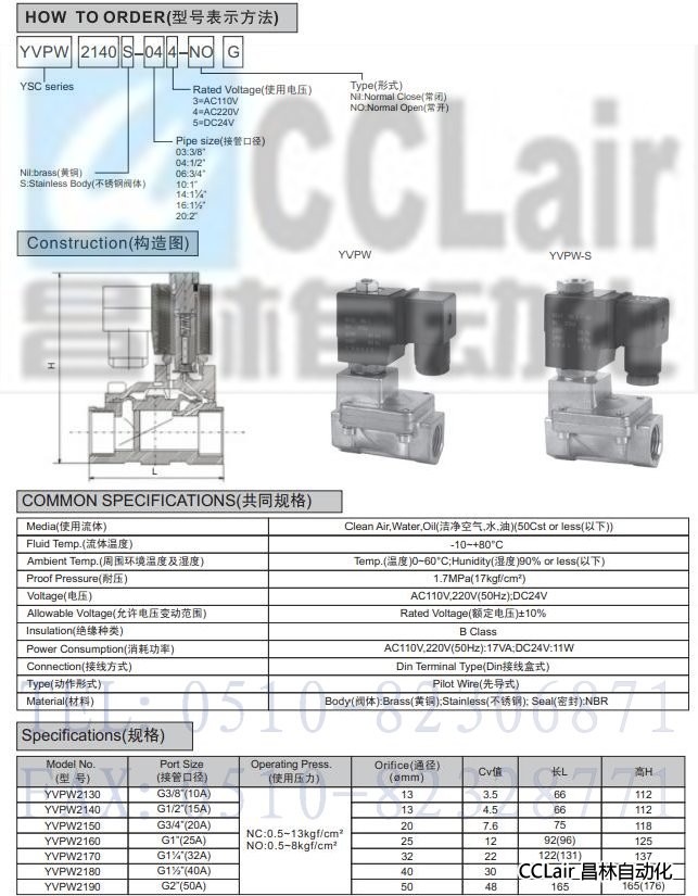 YVPW2130,YVPW2140,YVPW2150,YVPW2160,二通先導(dǎo)型電磁閥