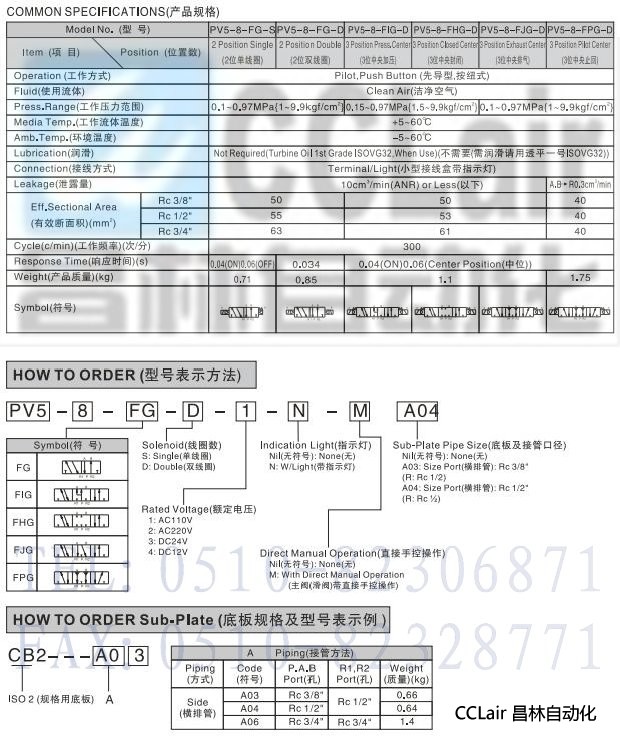 PV5-8-FG-S,PV5-8-FG-D,PV5-8-FG,PV5-8-FIG,先導(dǎo)式5通電磁閥