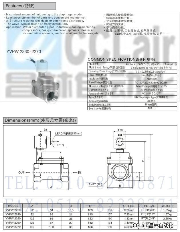 YVPW2230,YVPW2240,YVPW2250,YVPW2260,YVPW2270,先導(dǎo)型2通電磁閥