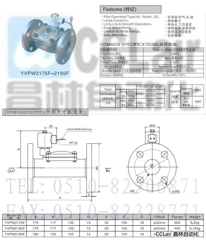YVPW2175F,YVPW2185F,YVPW2195F,2通先導(dǎo)型電磁閥