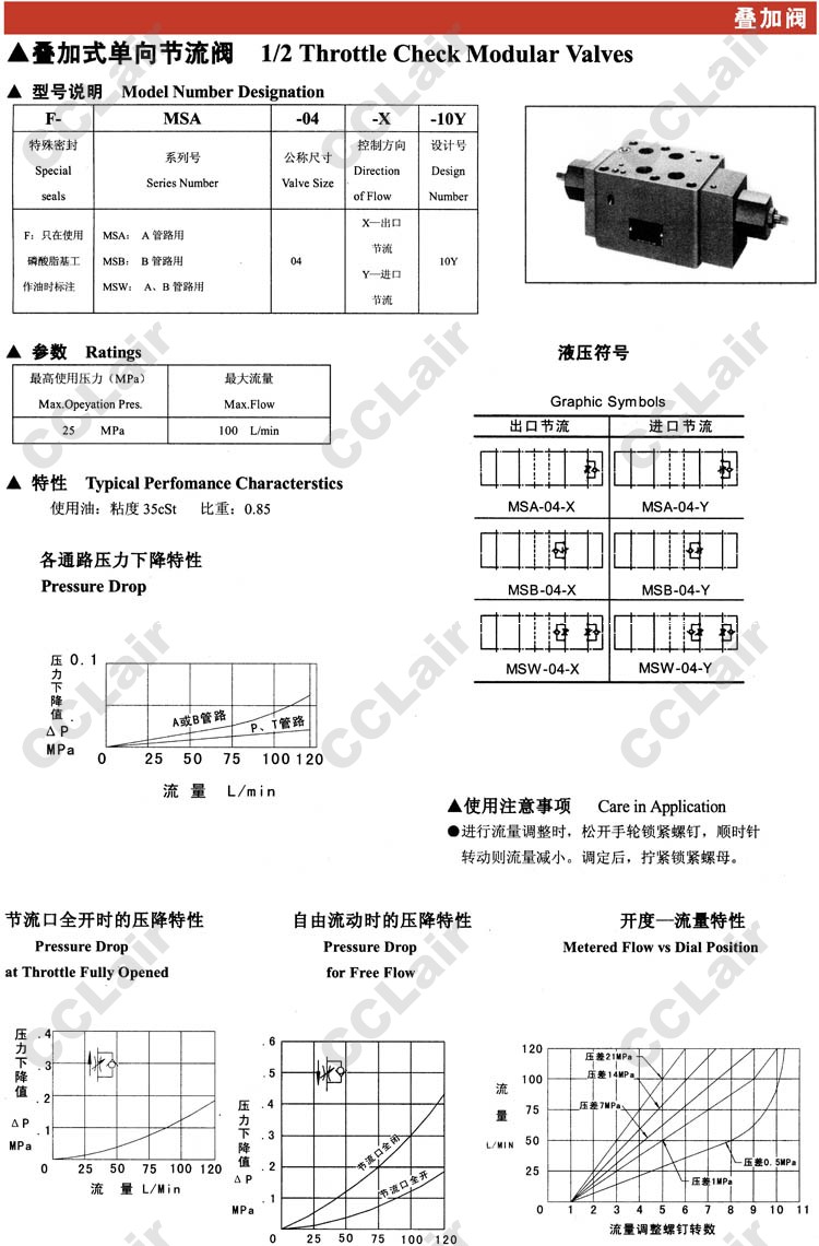 MSA-04-X-10Y,MSA-04-Y-10Y,MSB-04-X-10Y,MSB-04-Y-10Y,MSW-04-X-10Y,MSW-04-Y-10Y,疊加式單向節(jié)流閥,YUCIYUKEN榆次油研
