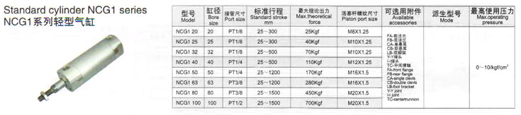 NCG120,NCG125,NCG132,NCG140,NCG150,NCG163,NCG180,NCG1100,輕型氣缸