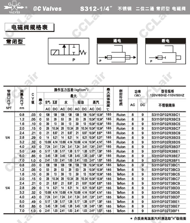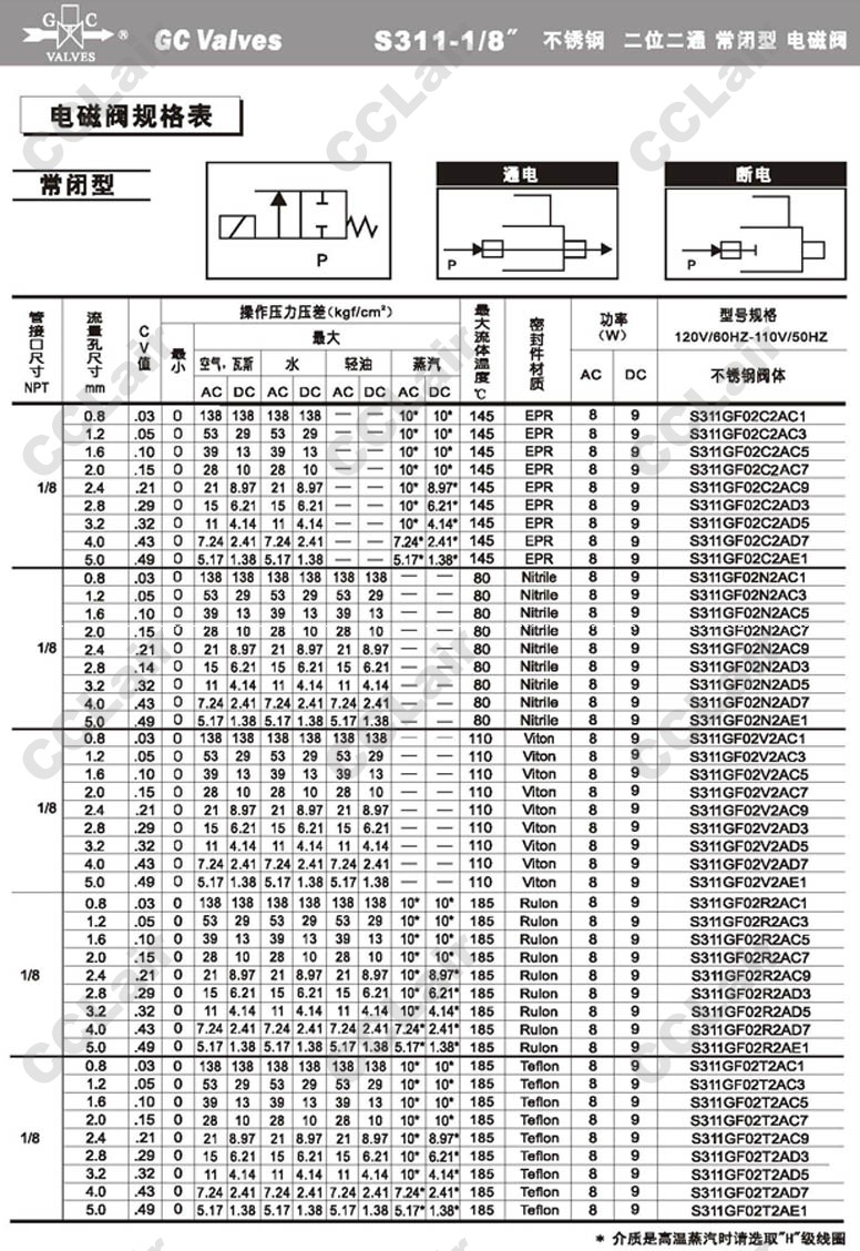 S311GF02N8AD3,GC Valves S311GF02N8AD5,S311GF02N8AD7,S311GF02N8AE1,S311GF02N8AE7,S311GF02N9AF1,