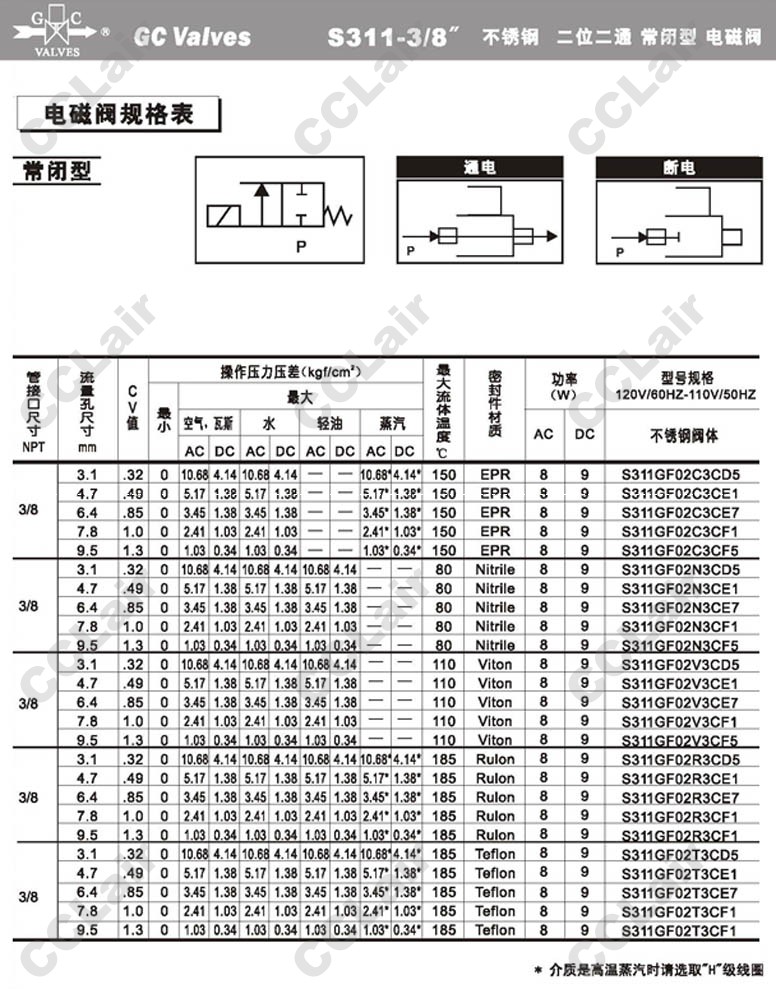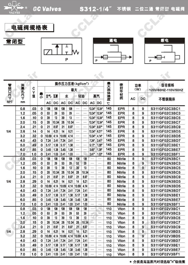 S311GF02V3BC3,GC Valves S311GF02V3BC5,S311GF02V3BC7,S311GF02V3BC9,S311GF02V3BD3,S311GF02V3BD5,