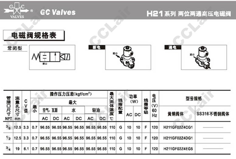 詳細(xì)信息 H211GF02Z4CG1,H211GF02Z4DG1,H211GF02Z4EG5,GC Valves二位二通高壓電磁閥