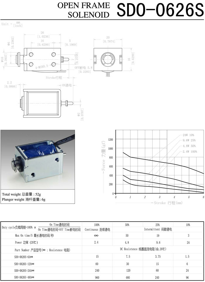 詳細(xì)信息 SDO-0626S-6A,SDO-0626S-12A,SDO-0626S-24A,SDO-0626S-48A,直動(dòng)電磁鐵