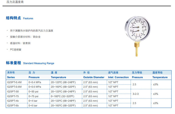 G25PT-0.4M,G25PT-0.6M,G25PT-50,G25PT-75,G25PT-4b,G25PT-6b,壓力及溫度表 |