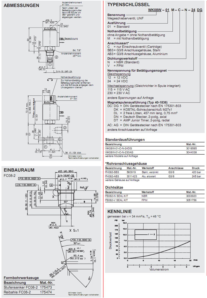 WK08W-01-C-N-24DG,WK08W-01-C-N-230AG,HYDAC電磁2/2方向滑閥