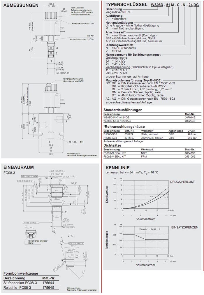 WS08D-51-C-N-24DG,WS08D-51-C-N-230AG,HYDAC二位三通方向提升閥