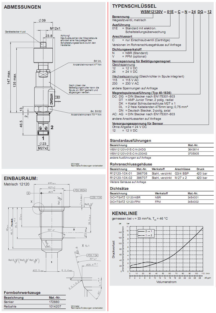 WSM12120-01E-C-N-24DG,WSM12120-01E-C-N-230AG,HYDAC電磁2/2方向座閥