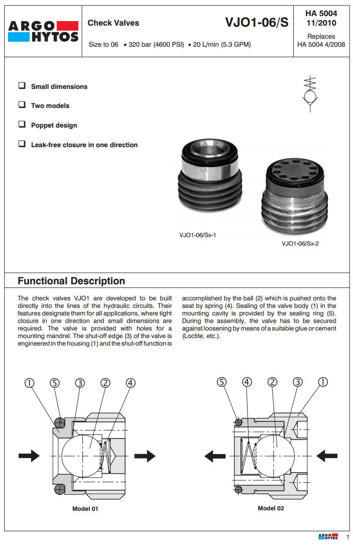 VJO1-06/SG-1,VJO1-06/SS-1,VJO1-06/SG-2,VJO1-06/SS-2,ARGO止回閥