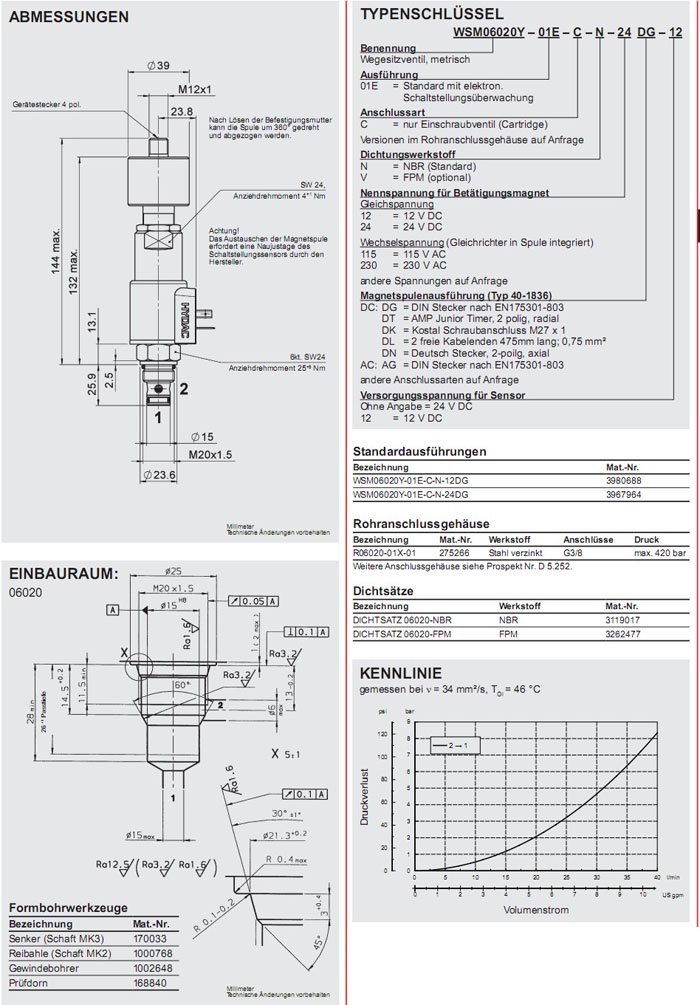 WSM06020Y-01E-C-N-12DG,WSM06020Y-01E-C-N-24DG,HYDAC電磁2/2方向座閥