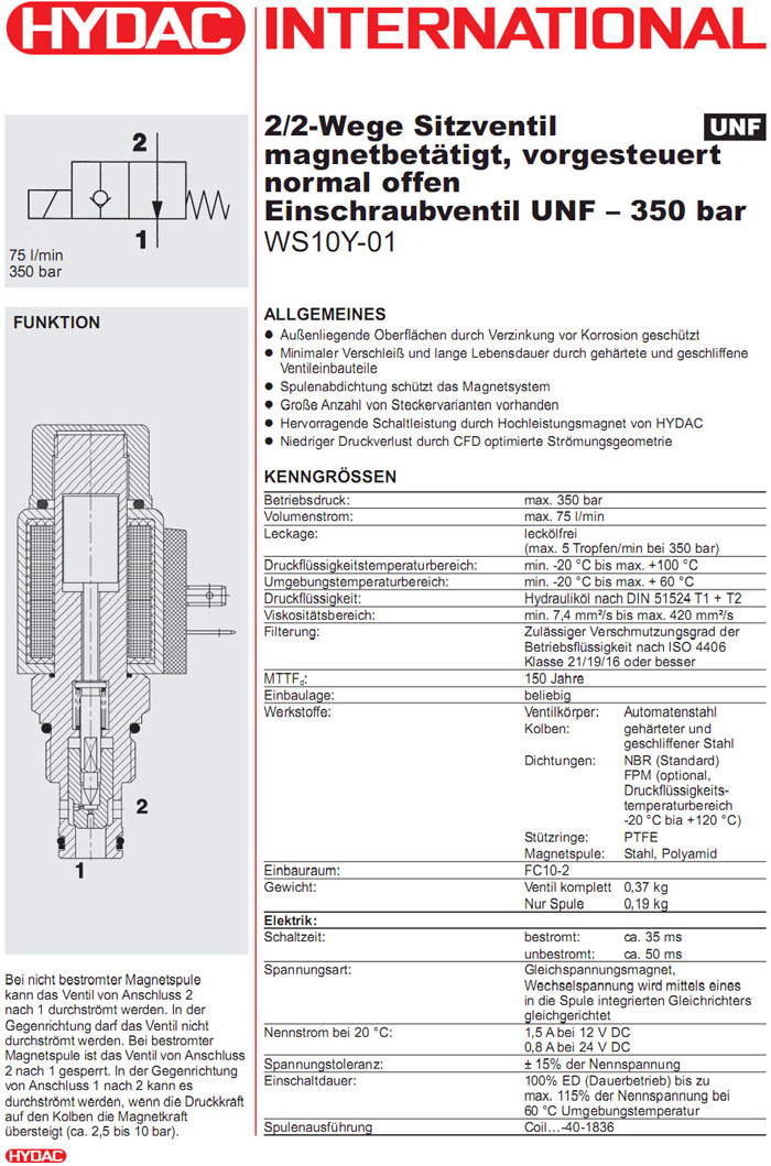 WS10Y-01-C-N-24DG,WS10Y-01-C-N-230AG,HYDAC電磁2/2方向座閥