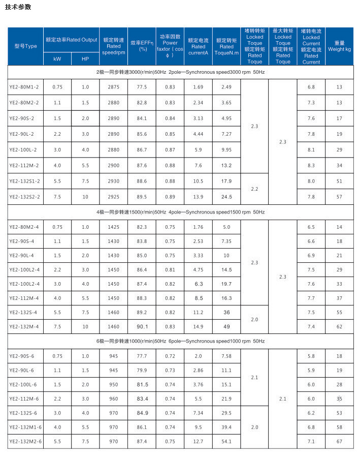 YE2-132S2-2,YE2-80M2-4,YE2-90S-4,YE2-100L2-4,YE2-112M-4,YE2-132S-4,