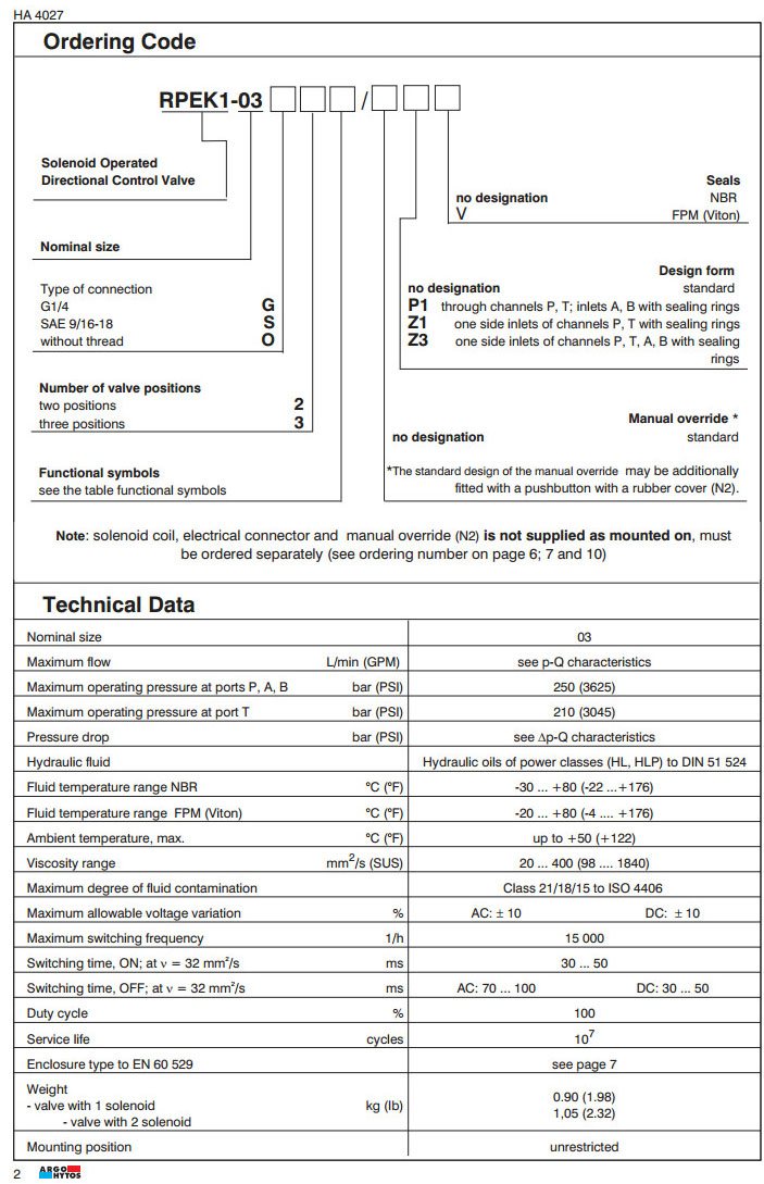 RPEK1-03,RPEK1-03G2Z11,RPEK1-03G3Y11,RPEK1-03O2Y51,RPEK1-03O2R21,ARGO電磁方向控制閥