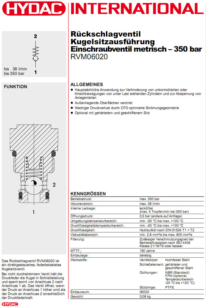 RVM06020-01-C-N-0.5,HYDAC止回閥