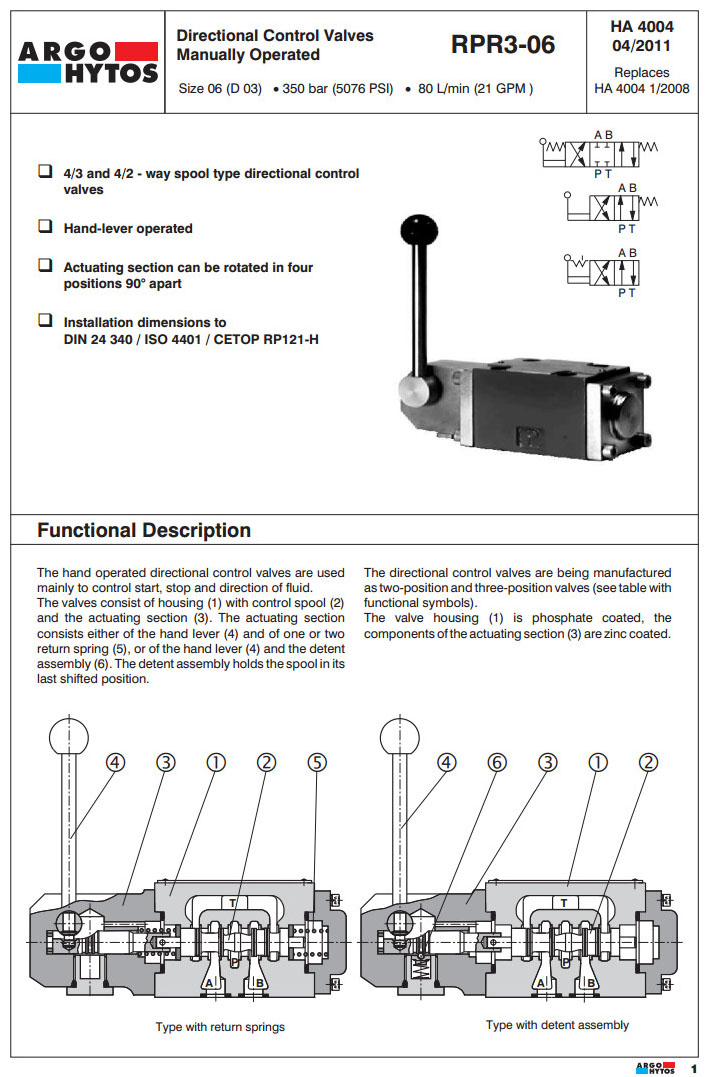 RPR3-062,RPR3-063,RPR3-062Z11,RPR3-063J75,RPR3-062J15,RPR3-063Y11,RPR3-062J75,ARGO手動方向控制閥