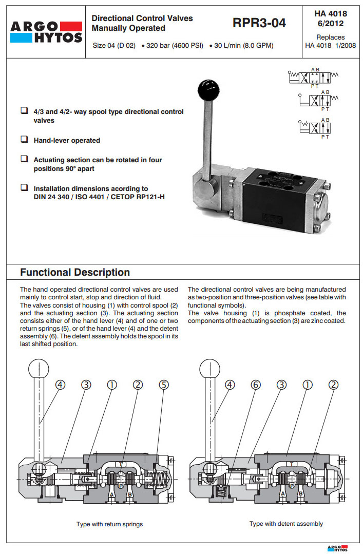 RPR3-042,RPR3-043,RPR3-042Z11,RPR3-043Z11,RPR3-042L21,RPR3-043Y11,RPR3-042R11,ARGO手動(dòng)方向控制閥