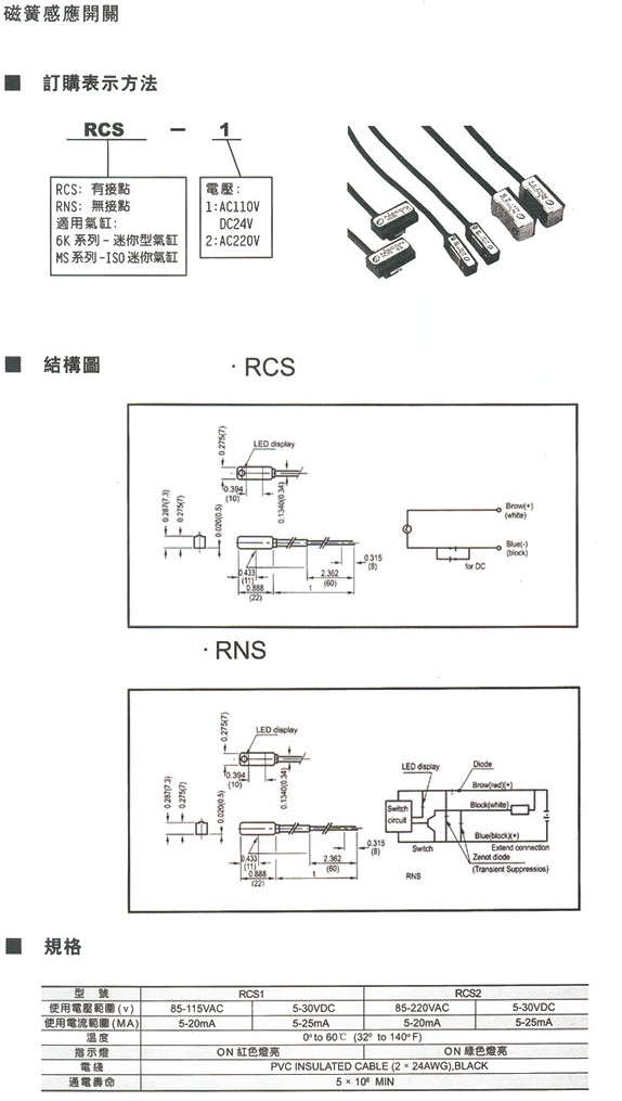 RCS-1,RCS-2,RNS-1,RNS-2,磁簧感應(yīng)開關(guān)