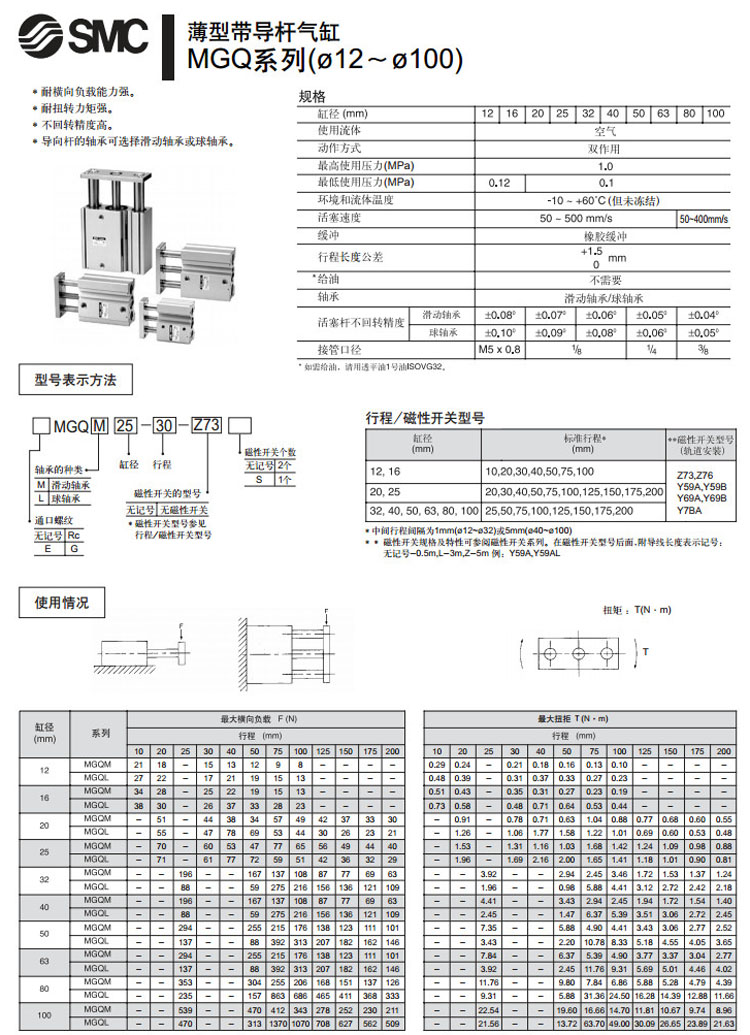 MGQL12,MGQL16,MGQL20,MGQL25,MGQL32,MGQL40,MGQL50,MGQL63,MGQL80,MGQL100,MGQL12-10,SMC薄型帶導(dǎo)桿氣缸