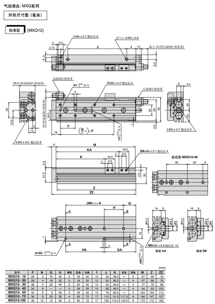 MXQ6-10,MXQ8-10,MXQ12-10,MXQ16-10,MXQ20-10,MXQ25-10,MXQ6-20,SMC氣動滑臺氣缸