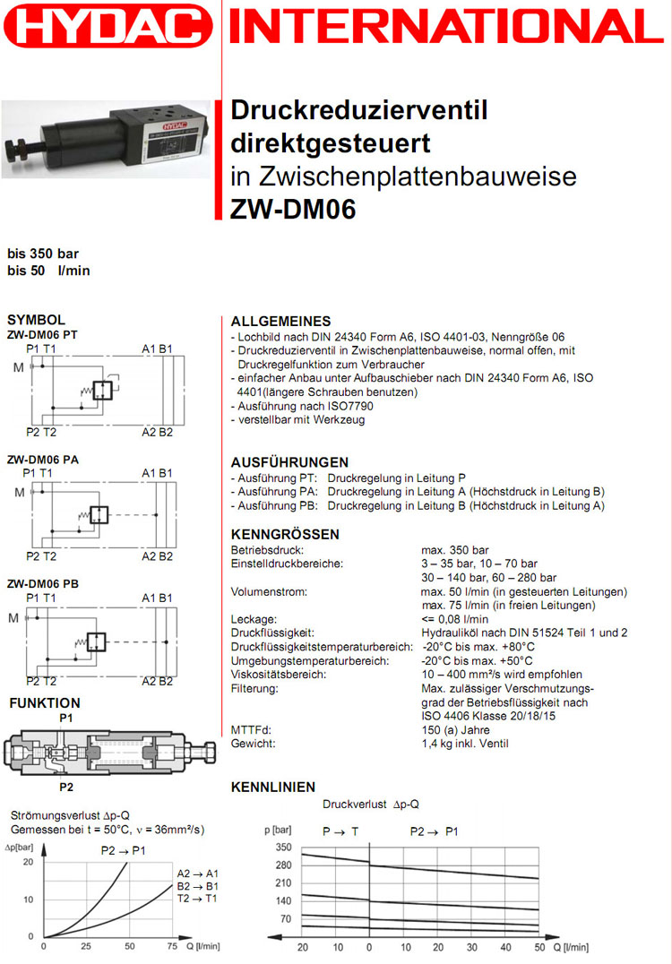 DZW-DM06-01-PT,DZW-DM06-01-PA,DZW-DM06-01-PB,HYDAC直動式減壓閥