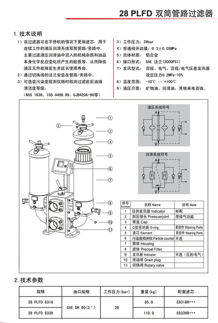 28PLFD8316,28PLFD8339,雙筒管路過濾器