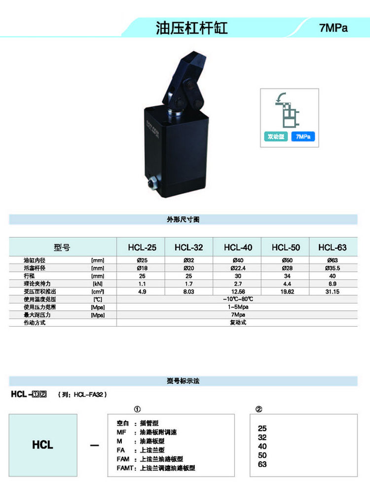 HCL,HCL-M,HCL-MF,HCL-FA,HCL-FAM,HCL-FAMT,HCL-25,HCL-M25,HCL-MF25,HCL-FA25,杠桿式油壓缸