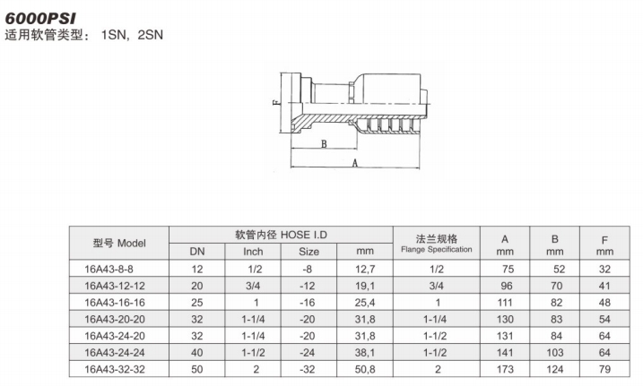 16A43-8-8,16A43-12-12,16A43-16-16,16A43-20-20,16A43-24-20,16A43-24-24,16A43-32-32,直法蘭接頭 |