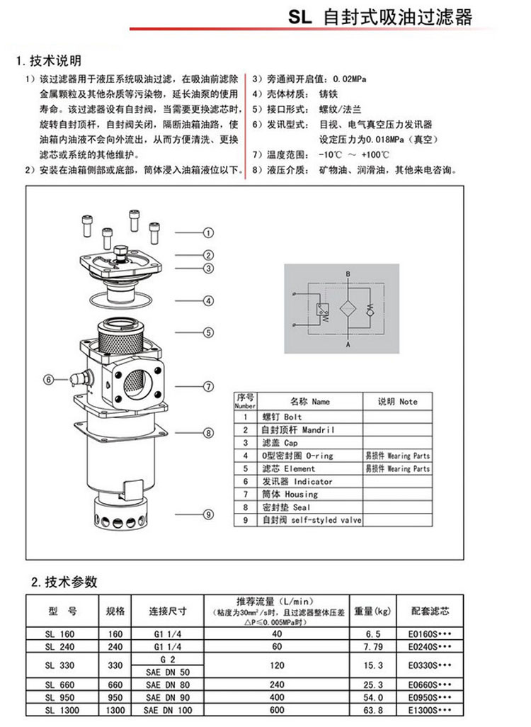 E0160S,E0240S,E0330S,E0660S,E0950S,E1300S,E0160S010PP,E0240S180WP,自封式吸油過濾器濾芯