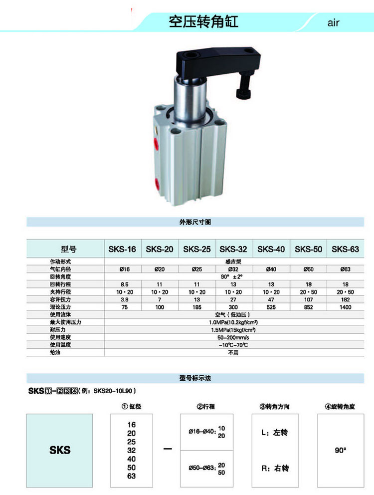 SKS16,SKS20,SKS25,SKS32,SKS40,SKS50,SKS63,SKS16-10L90,SKS63-50L90,感應(yīng)式轉(zhuǎn)角缸 |