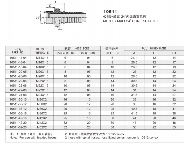 10511-14-04,10511-16-04,10511-18-04,10511-20-05,10511-20-06,10511-22-05,扣壓式軟管接頭