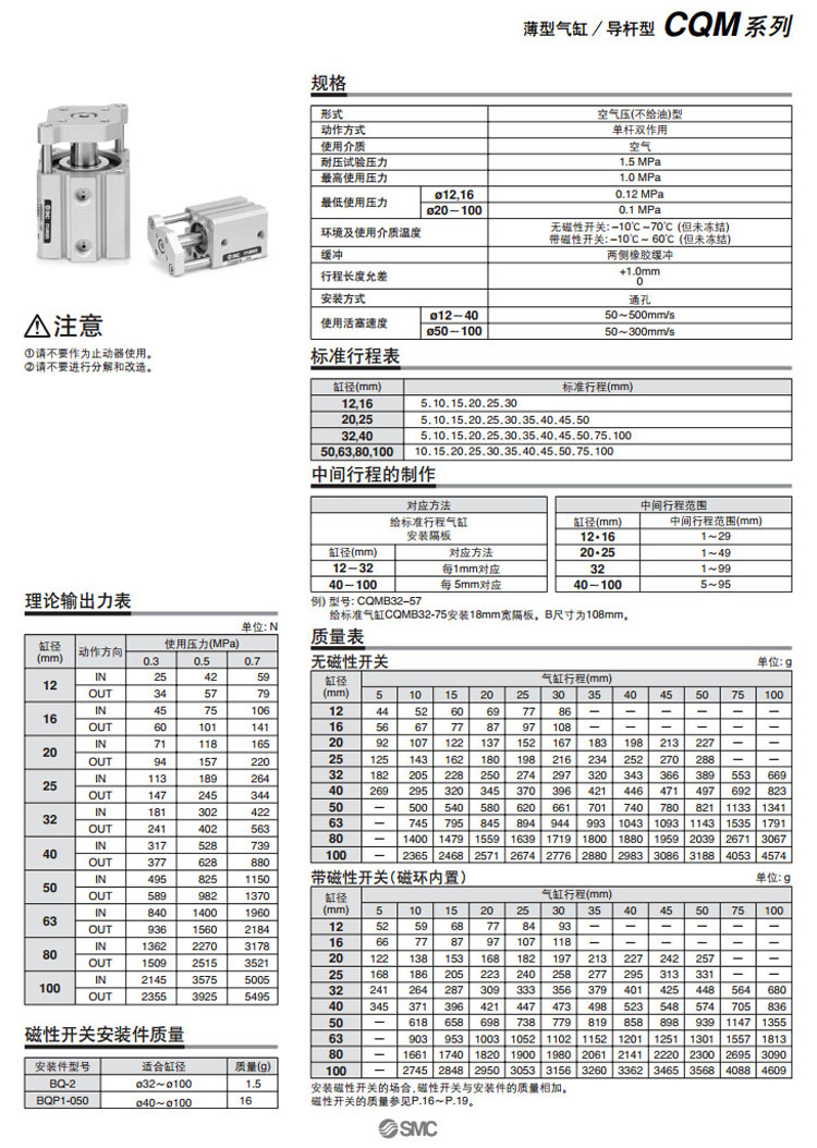 CQMA32-5,CQMA40-5,CQMA50-10,CQMA63-10,CQMA80-10,CQMA100-10,SMC薄型氣缸