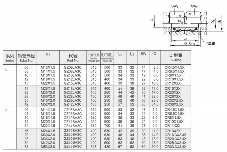 GZ06LA3C,GZ08LA3C,GZ10LA3C,GZ10SA3C,GZ12SA3C,GZ14SA3C,直通組合接頭 |