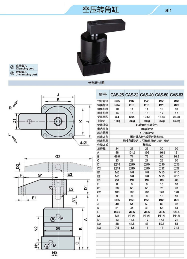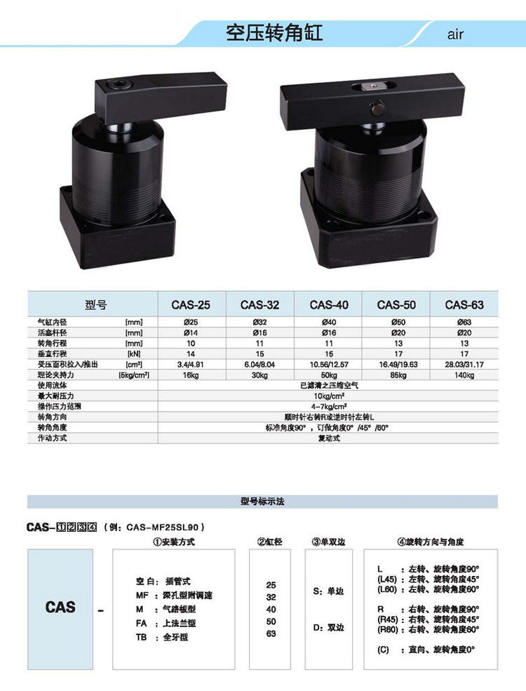 CAS,CAS-MF,CAS-M,CAS-FA,CAS-TB,CAS-25,CAS-M40,CAS-TB63,CAS-FA32,空壓轉(zhuǎn)角缸