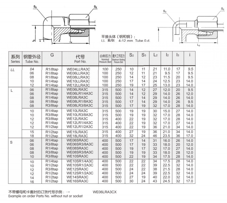 WE08LR3/8A3C,WE10LRA3C,WE10LR1/4A3C,WE12LR1/2A3C,WE12LRA3C,