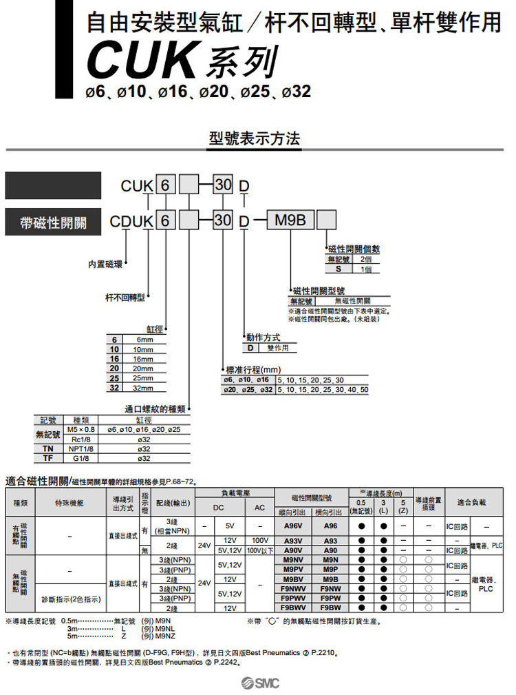 CUK6-5,CUK10-5,CUK16-5,CUK20-5,CUK25-5,CUK32-5,CDUK6-5,CDUK10-5,CDUK16-5,CDUK20-5,CDUK25-5,CDUK32-5,SMC自由安裝型氣缸