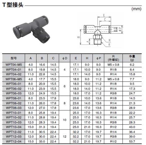 WPT04-M5,WPT04-01,WPT04-02,WPT06-M5,WPT06-01,WPT06-02,WPT06-03,WPT08-01,T型接頭
