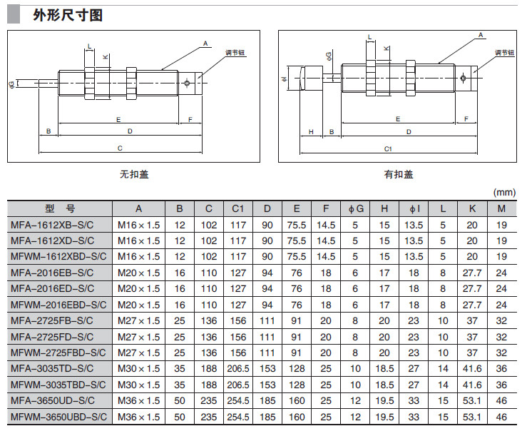 MFA-1212C1-C,MFA-1008PB1-S,MFWM-2540LBD-C,MFA-1612XD-C,MFWM-2016EBD-S,液壓緩沖器