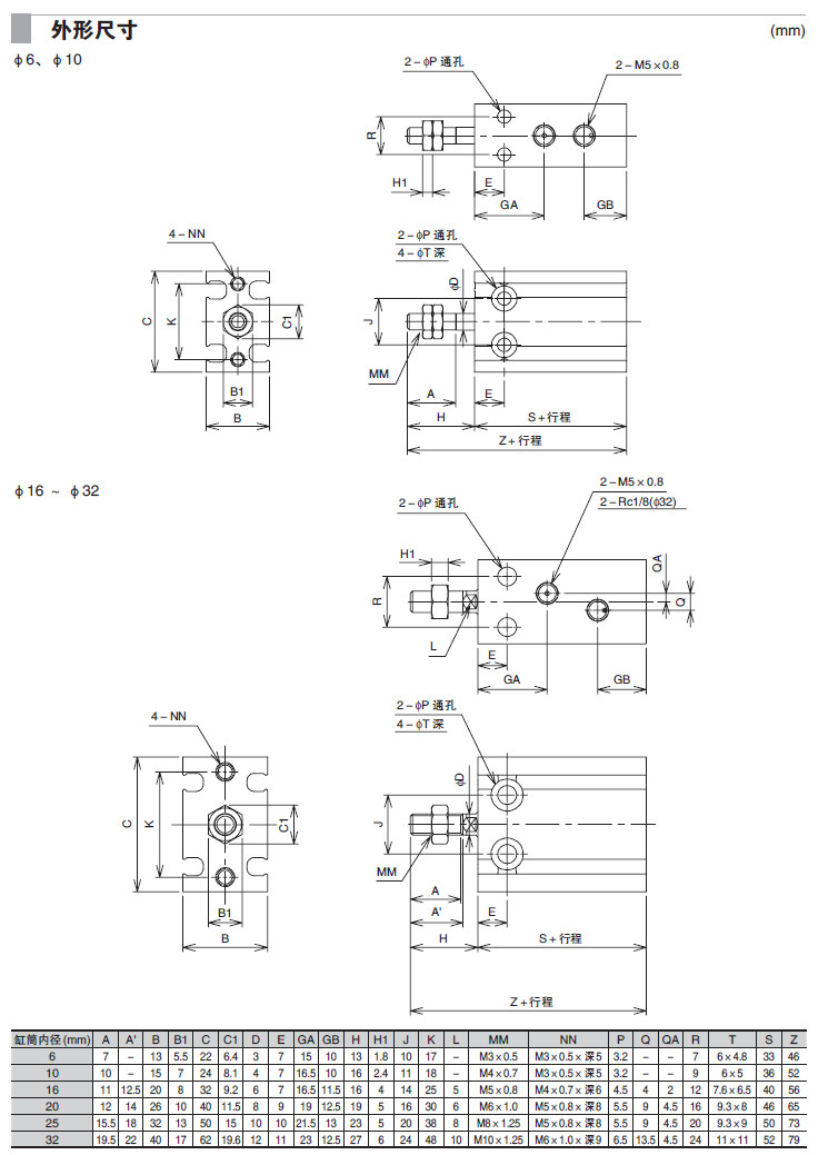 EM-11M-6,EM-11M-10,EM-11M-16,EM-11M-20,EM-11M-25,EM-11M-32,自由安裝型氣缸