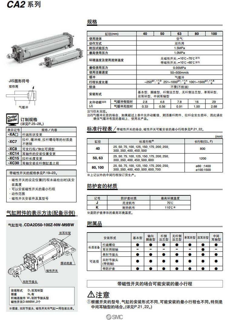 CDA2D80-600,CDA2D100-600,CDA2T50-600,CDA2T63-600,CDA2T80-600,CDA2T100-600,CDA2B80-700,CDA2B100-700,SMC標(biāo)準(zhǔn)型氣缸